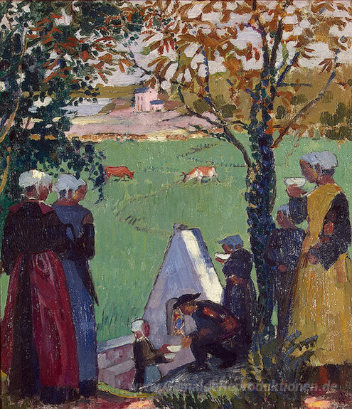 Wir bieten Ihnen eine handgefertigte Reproduktion auf Leinwand des berühmten Kunstwerks 'Das Heiliger Frühling bei Guidel' von Maurice Denis, aus dem Reproduktionsmuseum.