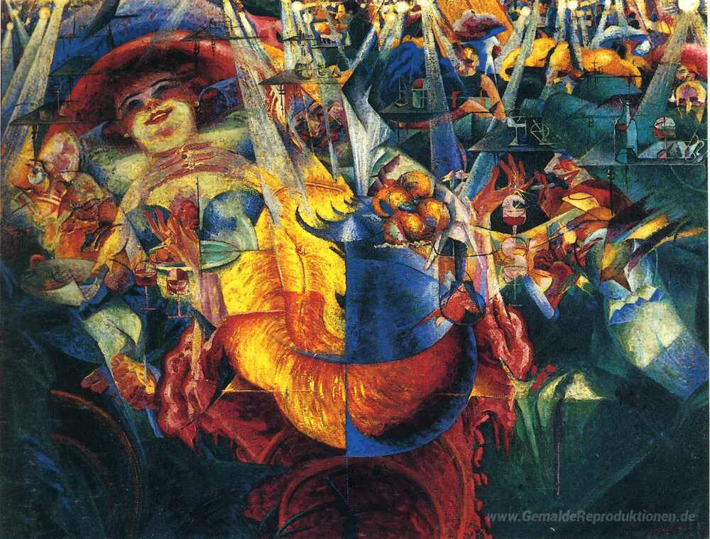 Wir bieten Ihnen eine handgefertigte Reproduktion auf Leinwand des berühmten Kunstwerks 'Das Lachen' von Umberto Boccioni, aus dem Reproduktionsmuseum.