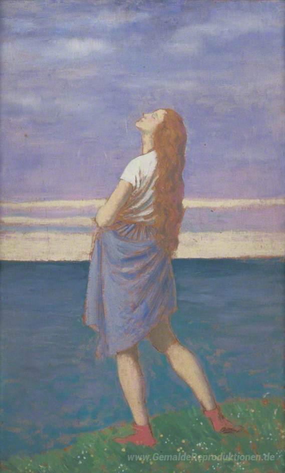 Wir bieten Ihnen eine handgefertigte Reproduktion auf Leinwand des berühmten Kunstwerks 'Das Mädchen auf der Klippe' von Augustus John, aus dem Reproduktionsmuseum.