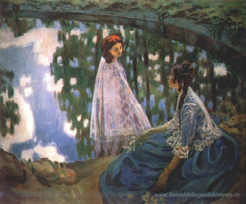 Wir bieten Ihnen eine handgefertigte Reproduktion auf Leinwand des berühmten Kunstwerks 'Das Schwimmbecken' von Victor Borisov-Musatov, aus dem Reproduktionsmuseum.