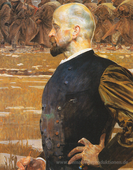Wir bieten Ihnen eine handgefertigte Reproduktion auf Leinwand des berühmten Kunstwerks 'Das Tribut-Geld (Triptychon) rechts' von Jacek Malczewski, aus dem Reproduktionsmuseum.
