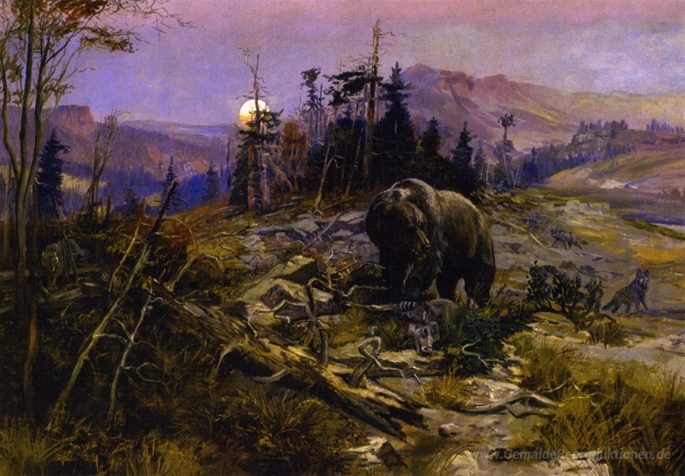 Willkommen in unserer exquisiten Sammlung von Ölgemälden, in der Kunstwerke von Meisterhand auf Sie warten. Unter unseren herausragenden Stücken finden Sie das faszinierende Gemälde Dem Sieger gehört die Beute, geschaffen von dem legendären Künstler Charles M. Russell. Russell, der als einer der bedeutendsten Maler des amerikanischen Westens gilt, bringt in seinen Werken die unbändige Schönheit der Natur und die Dynamik der Menschen in den Wilden Westen meisterhaft zum Ausdruck.