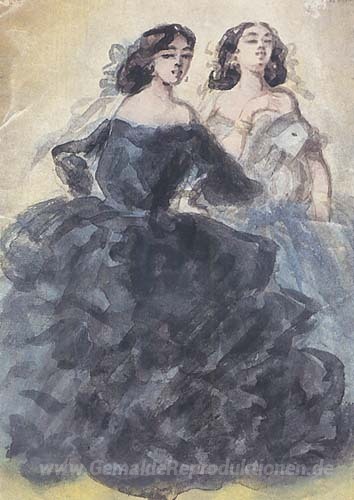 Wir bieten Ihnen eine handgefertigte Reproduktion auf Leinwand des berühmten Kunstwerks 'Demi-mondaines' von Constantin Guys, aus dem Reproduktionsmuseum.