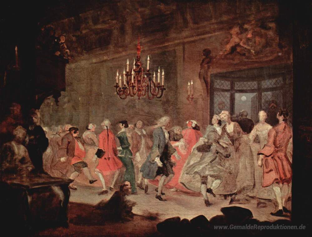 Wir bieten Ihnen eine handgefertigte Reproduktion auf Leinwand des berühmten Kunstwerks 'Der Ball' von William Hogarth, aus dem Reproduktionsmuseum.