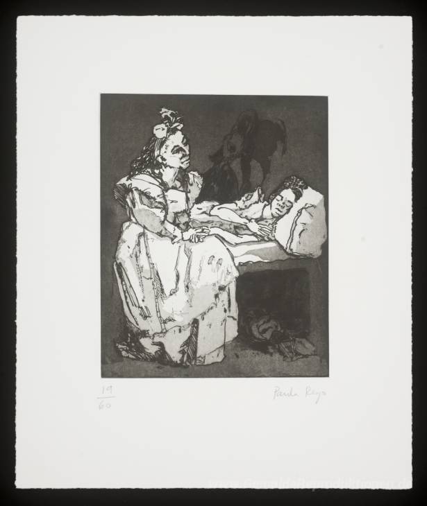 Wir bieten Ihnen eine handgefertigte Reproduktion auf Leinwand des berühmten Kunstwerks 'Der Beschützer' von Paula Rego, aus dem Reproduktionsmuseum.