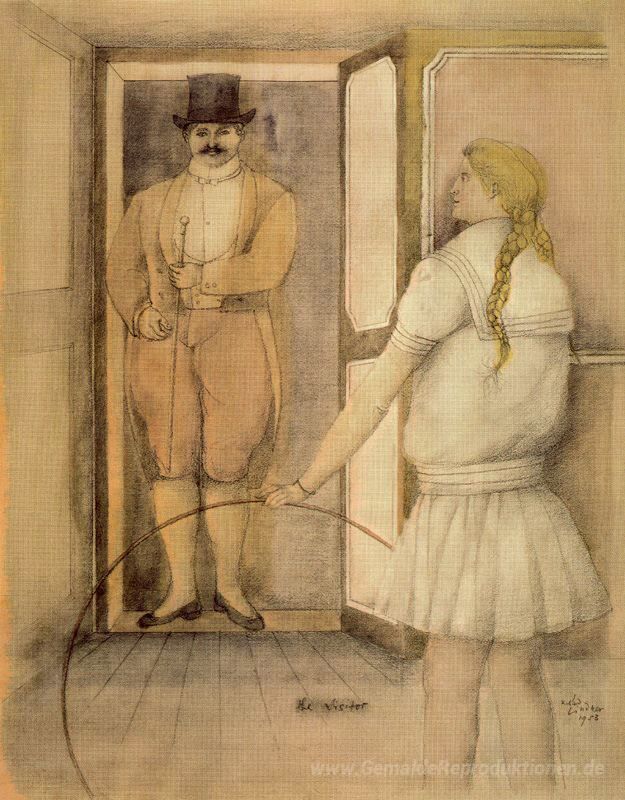 Wir bieten Ihnen eine handgefertigte Reproduktion auf Leinwand des berühmten Kunstwerks 'Der Besucher' von Richard Lindner, aus dem Reproduktionsmuseum.
