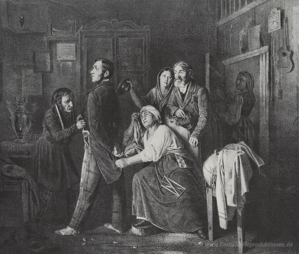 Wir bieten Ihnen eine handgefertigte Reproduktion auf Leinwand des berühmten Kunstwerks 'Der erste Rang. Sohn eines Kirchendiener, in der Stifts Registra' von Vasily Perov, aus dem Reproduktionsmuseum.