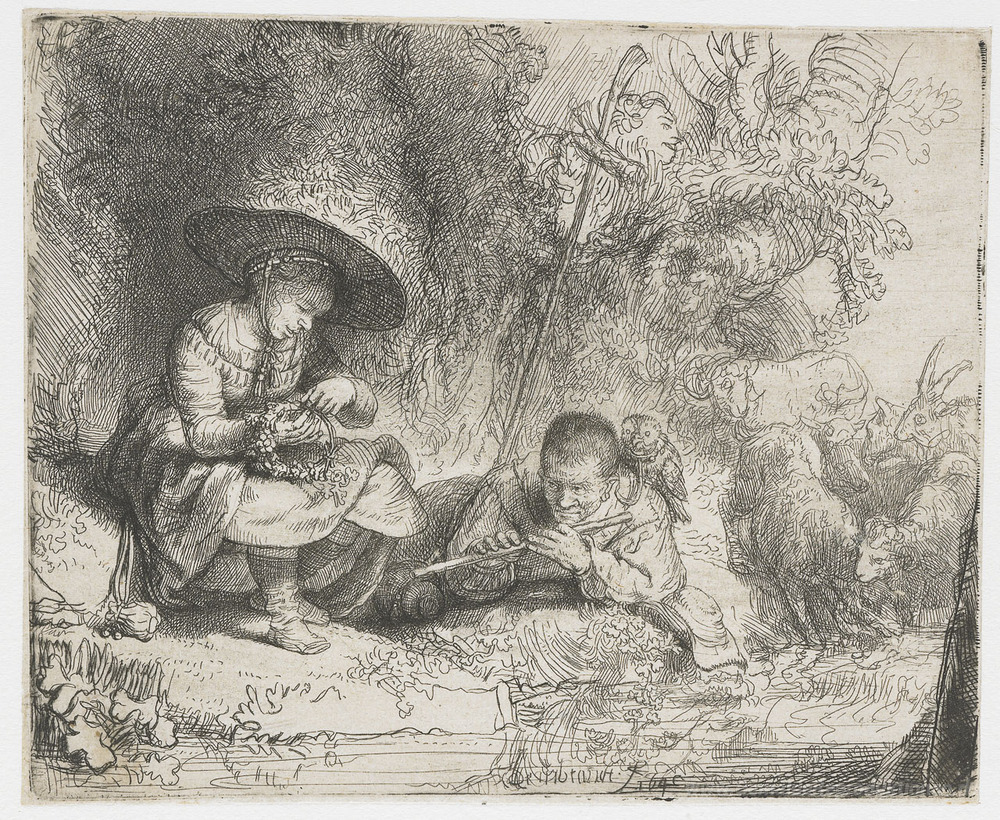 Wir bieten Ihnen eine handgefertigte Reproduktion auf Leinwand des berühmten Kunstwerks 'Der Flötenspieler' von Rembrandt, aus dem Reproduktionsmuseum.