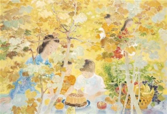 Wir bieten Ihnen eine handgefertigte Reproduktion auf Leinwand des berühmten Kunstwerks 'Der Geburtstagskuchen' von Le Pho, aus dem Reproduktionsmuseum.