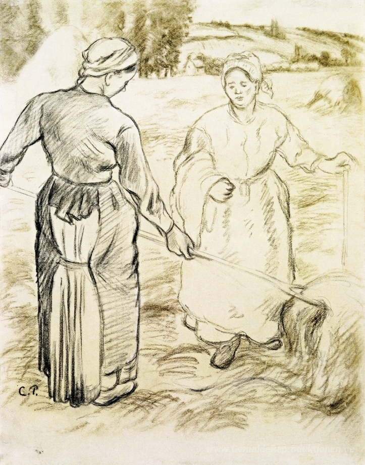 Wir bieten Ihnen eine handgefertigte Reproduktion auf Leinwand des berühmten Kunstwerks 'Der Heuwender' von Camille Pissarro, aus dem Reproduktionsmuseum.