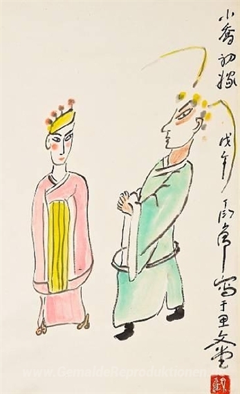 Ölgemälde wie Der Jüngere Qiao, eine neue Braut zeichnen sich durch ihre lebendigen Farben und feinen Details aus, die jede Wand in ein eindrucksvolles Kunstwerk verwandeln. Die meisterhafte Technik von Ding Yanyong schafft eine Atmosphäre, die sowohl beruhigend als auch inspirierend wirkt. Lassen Sie sich von der kraftvollen Präsenz dieses Gemäldes verführen und bringen Sie eine neue Dimension der Ästhetik in Ihr Zuhause, die Ihre Räume harmonisch ergänzt und bereichert.
