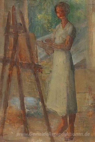 Wir bieten Ihnen eine handgefertigte Reproduktion auf Leinwand des berühmten Kunstwerks 'Der Künstler' von Theophrastos Triantafyllidis, aus dem Reproduktionsmuseum.