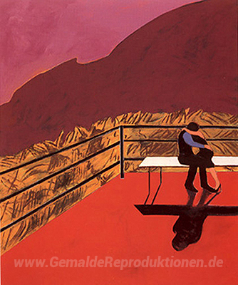 Wir bieten Ihnen eine handgefertigte Reproduktion auf Leinwand des berühmten Kunstwerks 'Der Kuss' von Joan Brown, aus dem Reproduktionsmuseum.