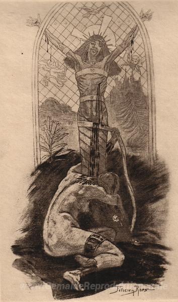 Wir bieten Ihnen eine handgefertigte Reproduktion auf Leinwand des berühmten Kunstwerks 'Der Liebhaber Christi' von Felicien Rops, aus dem Reproduktionsmuseum.