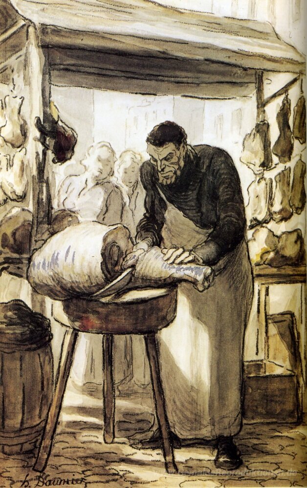 Wir bieten Ihnen eine handgefertigte Reproduktion auf Leinwand des berühmten Kunstwerks 'Der Metzger' von Honore Daumier, aus dem Reproduktionsmuseum.