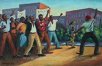 Wir bieten Ihnen eine handgefertigte Reproduktion auf Leinwand des berühmten Kunstwerks 'Der Protest' von George Pemba, aus dem Reproduktionsmuseum.