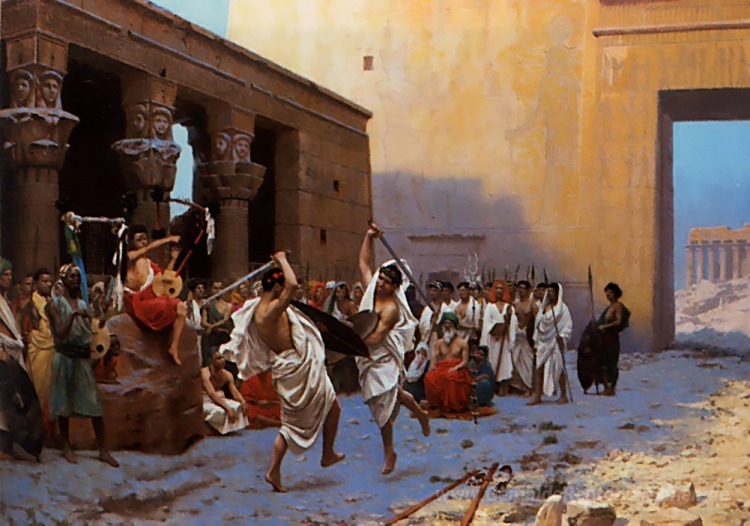 Wir bieten Ihnen eine handgefertigte Reproduktion auf Leinwand des berühmten Kunstwerks 'Der Pyrrhussieg Tanz' von Jean-Leon Gerome, aus dem Reproduktionsmuseum.