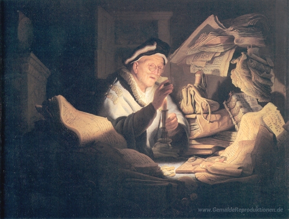 Wir bieten Ihnen eine handgefertigte Reproduktion auf Leinwand des berühmten Kunstwerks 'Der reiche Mann aus der Parabel' von Rembrandt, aus dem Reproduktionsmuseum.