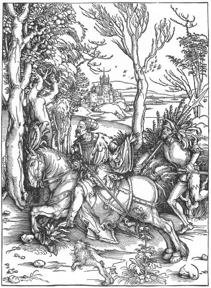 Wir bieten Ihnen eine handgefertigte Reproduktion auf Leinwand des berühmten Kunstwerks 'Der Ritter und der Landsknecht' von Albrecht Durer, aus dem Reproduktionsmuseum.