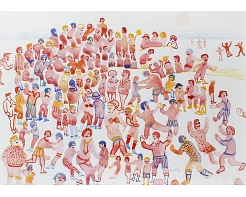 Wir bieten Ihnen eine handgefertigte Reproduktion auf Leinwand des berühmten Kunstwerks 'Der Strand' von Fred Yates, aus dem Reproduktionsmuseum.