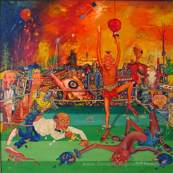 Wir bieten Ihnen eine handgefertigte Reproduktion auf Leinwand des berühmten Kunstwerks 'Dernier Championat mondial de boxe' von Nzante Spee, aus dem Reproduktionsmuseum.