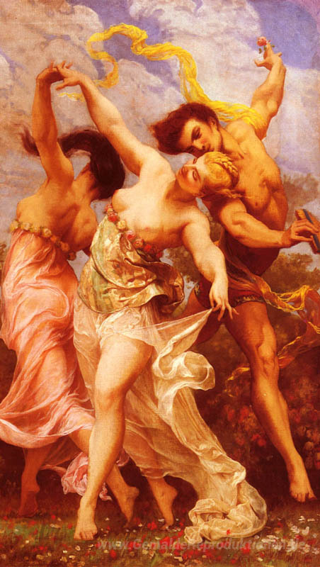 Wir bieten Ihnen eine handgefertigte Reproduktion auf Leinwand des berühmten Kunstwerks 'Die Amorous Dancers' von Gustave Boulanger, aus dem Reproduktionsmuseum.