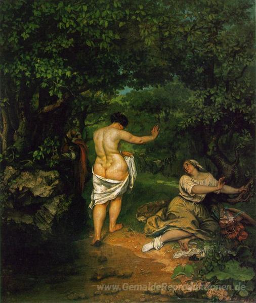 Wir bieten Ihnen eine handgefertigte Reproduktion auf Leinwand des berühmten Kunstwerks 'Die Badenden' von Gustave Courbet, aus dem Reproduktionsmuseum.