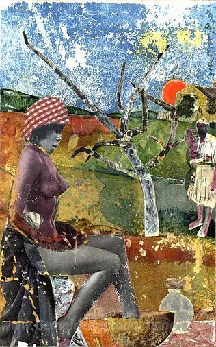 Wir bieten Ihnen eine handgefertigte Reproduktion auf Leinwand des berühmten Kunstwerks 'Die Calabash' von Romare Bearden, aus dem Reproduktionsmuseum.