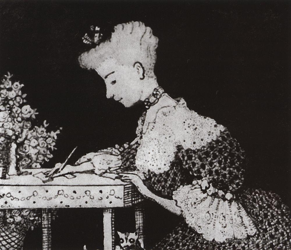 Wir bieten Ihnen eine handgefertigte Reproduktion auf Leinwand des berühmten Kunstwerks 'Die Dame an der Rezeption (anonymen Brief)' von Konstantin Somov, aus dem Reproduktionsmuseum.