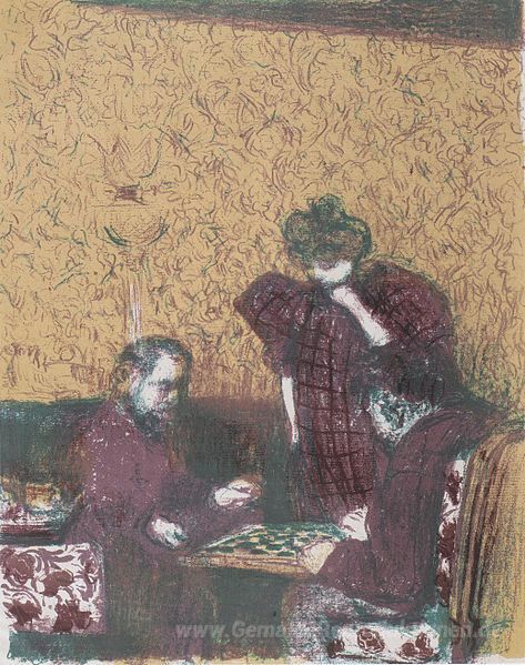 Wir bieten Ihnen eine handgefertigte Reproduktion auf Leinwand des berühmten Kunstwerks 'Die Damepartie' von Edouard Vuillard, aus dem Reproduktionsmuseum.