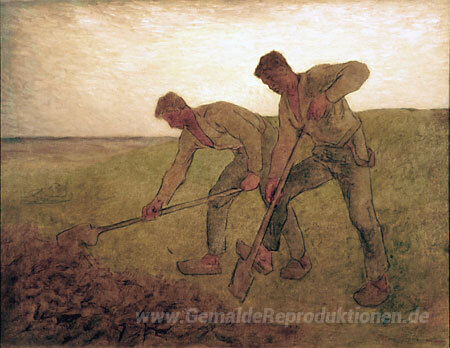 Wir bieten Ihnen eine handgefertigte Reproduktion auf Leinwand des berühmten Kunstwerks 'Die Diggers' von Jean-Francois Millet, aus dem Reproduktionsmuseum.