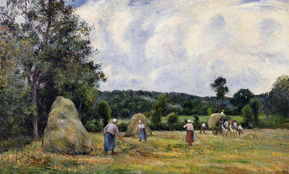 Wir bieten Ihnen eine handgefertigte Reproduktion auf Leinwand des berühmten Kunstwerks 'Die Ernte in Montfoucault 2' von Camille Pissarro, aus dem Reproduktionsmuseum.