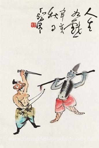 Wir bieten Ihnen eine handgefertigte Reproduktion auf Leinwand des berühmten Kunstwerks 'Die ganze Welt ist eine Bühne' von Ding Yanyong, aus dem Reproduktionsmuseum.