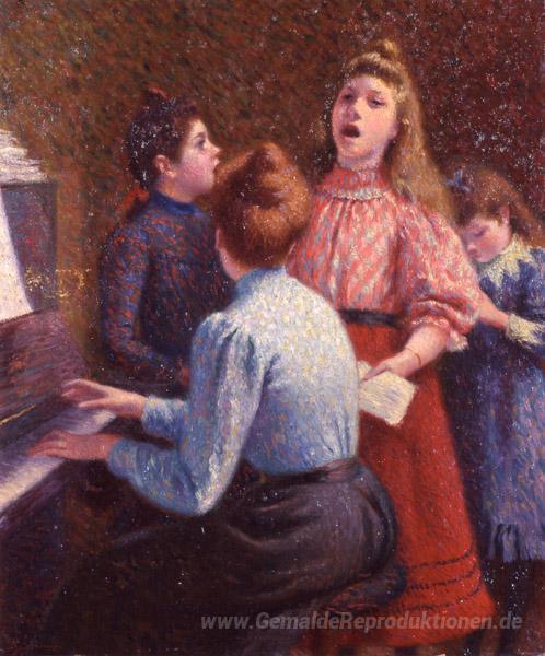 Wir bieten Ihnen eine handgefertigte Reproduktion auf Leinwand des berühmten Kunstwerks 'Die Gesangsstunde' von Federico Zandomeneghi, aus dem Reproduktionsmuseum.