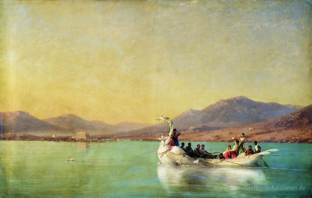 Willkommen in der faszinierenden Welt der Ölgemälde, wo kreative Meisterwerke und herausragende Künstler aufeinandertreffen. Unser Highlight ist das beeindruckende Werk Die Hochzeit des Dichters im antiken Griechenland von Ivan Aivazovsky, einem der bedeutendsten Maler des 19. Jahrhunderts, bekannt für seine meisterhafte Beherrschung von Licht und Farbe. Aivazovsky kombiniert romantische Erzählkunst mit dynamischen Kompositionen, die den Betrachter in eine andere Zeit und an einen anderen Ort entführen.