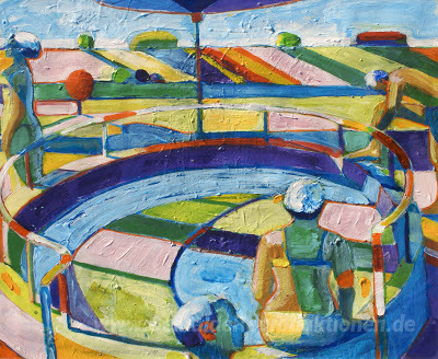 Willkommen in unserer erlesenen Kollektion von Ölgemälden, wo Kunstwerke nicht nur Wände schmücken, sondern auch Geschichten erzählen. Unter den meisterhaften Schöpfungen sticht Die Hot Tub des renommierten Künstlers Roland Petersen hervor. Petersen, bekannt für seinen einzigartigen Stil und seine lebendigen Farbkompositionen, vereint in diesem Werk Tradition und Moderne, um eine fesselnde Atmosphäre zu schaffen.
