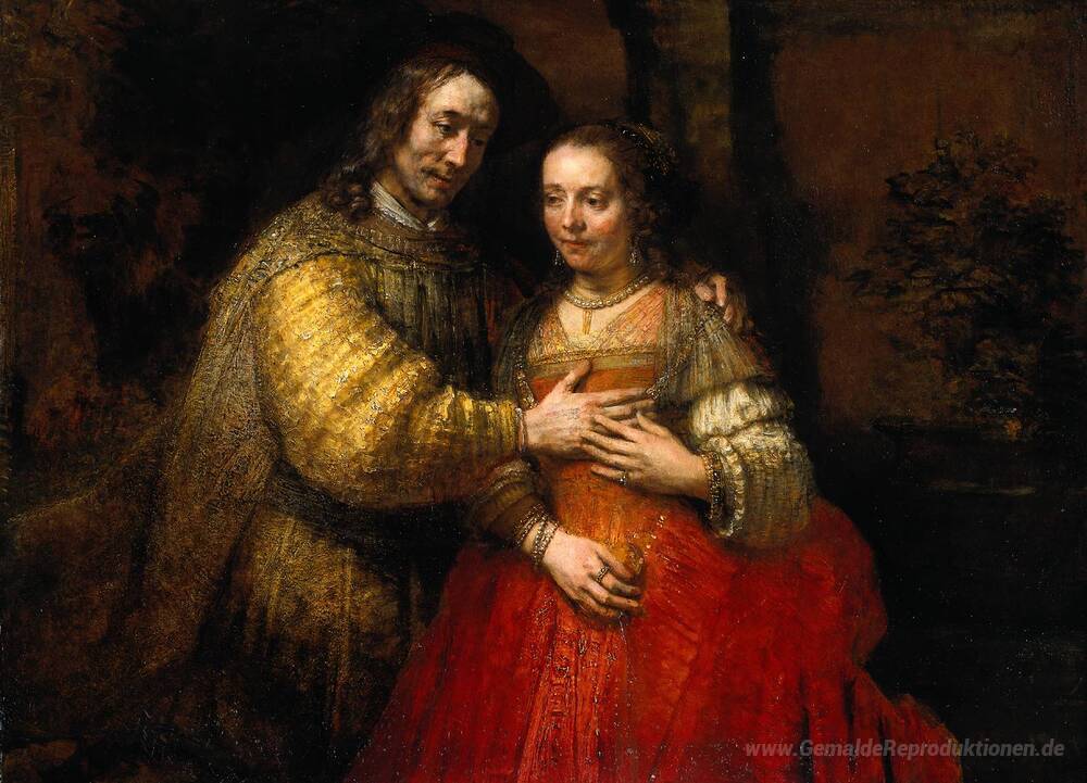 Wir bieten Ihnen eine handgefertigte Reproduktion auf Leinwand des berühmten Kunstwerks 'Die jüdische Braut' von Rembrandt, aus dem Reproduktionsmuseum.
