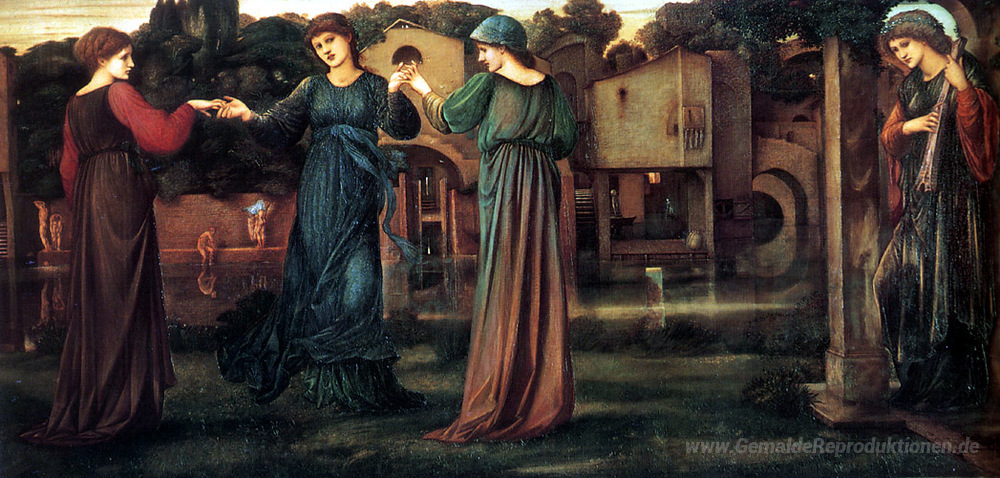 Wir bieten Ihnen eine handgefertigte Reproduktion auf Leinwand des berühmten Kunstwerks 'Die Mühle' von Edward Burne-Jones, aus dem Reproduktionsmuseum.