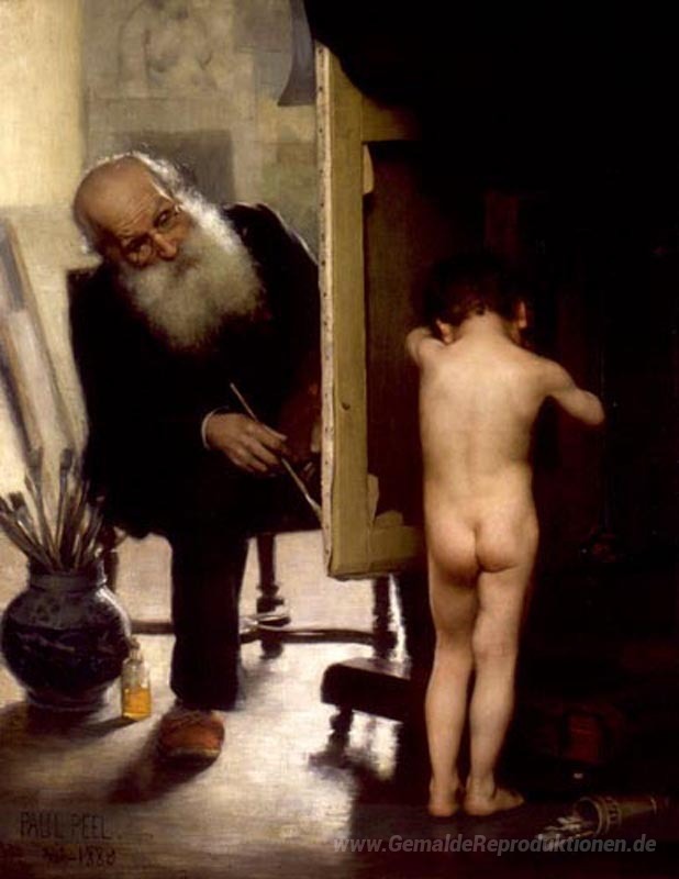 Die detailreiche Maltechnik von Paul Peel verleiht dem Gemälde eine lebendige Präsenz, die den Zuschauer in die dargestellte Szene hineinzieht. Mit sanften Farbverläufen und lichtdurchfluteten Kompositionen schafft er eine harmonische Atmosphäre, die jeden Raum bereichert. Investieren Sie in ein Ölgemälde, das nicht nur ein Kunstwerk ist, sondern auch eine Quelle der Inspiration und Besinnung für Ihr Zuhause.