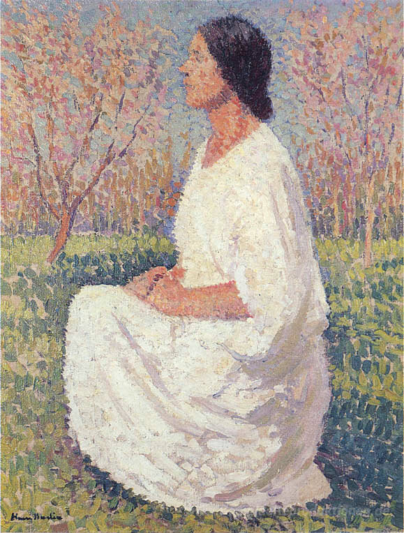 Wir bieten Ihnen eine handgefertigte Reproduktion auf Leinwand des berühmten Kunstwerks 'Die Muse' von Henri Martin, aus dem Reproduktionsmuseum.