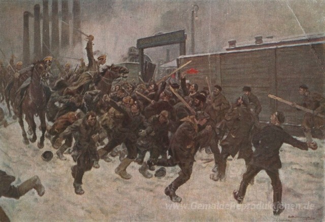 Wir bieten Ihnen eine handgefertigte Reproduktion auf Leinwand des berühmten Kunstwerks 'Die Niederlage der Streik' von Ivan Vladimirov, aus dem Reproduktionsmuseum.