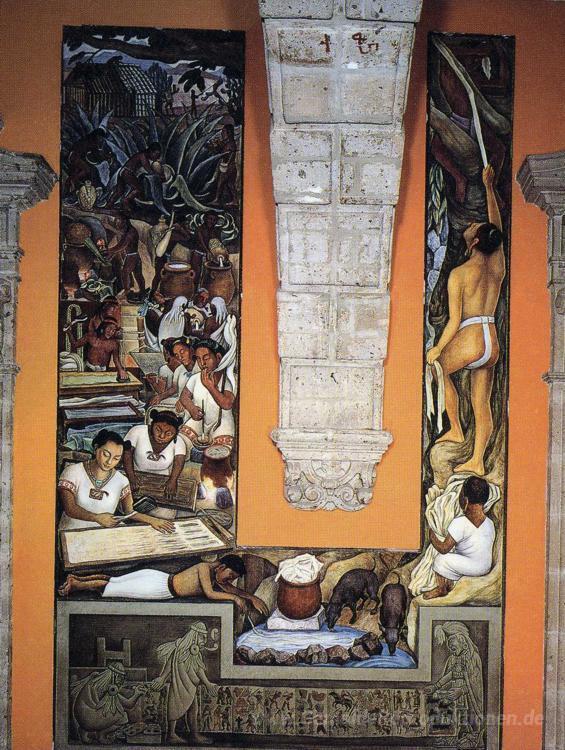 Wir bieten Ihnen eine handgefertigte Reproduktion auf Leinwand des berühmten Kunstwerks 'Die Papierhersteller' von Diego Rivera, aus dem Reproduktionsmuseum.