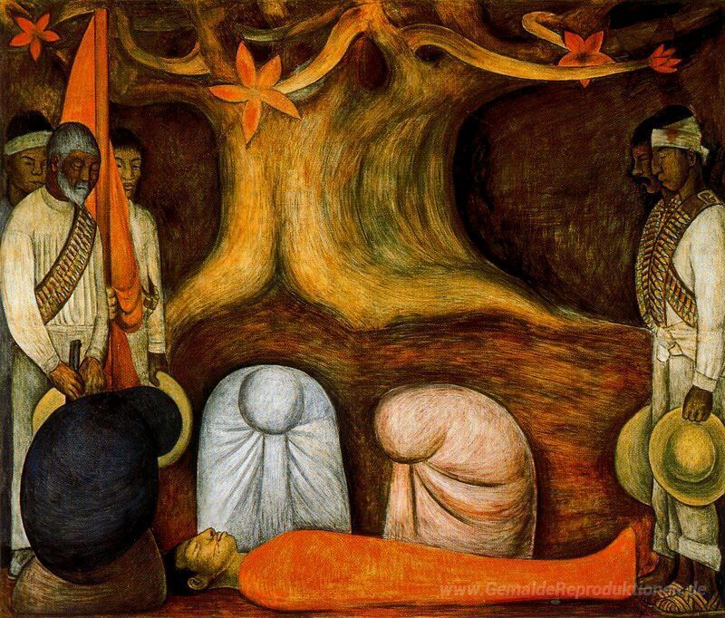 Wir bieten Ihnen eine handgefertigte Reproduktion auf Leinwand des berühmten Kunstwerks 'Die Perpetual Erneuerung des revolutionären Kampfes' von Diego Rivera, aus dem Reproduktionsmuseum.