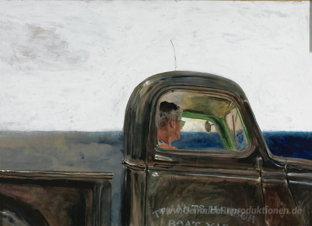 Wir bieten Ihnen eine handgefertigte Reproduktion auf Leinwand des berühmten Kunstwerks 'Die Pick-up' von Jamie Wyeth, aus dem Reproduktionsmuseum.