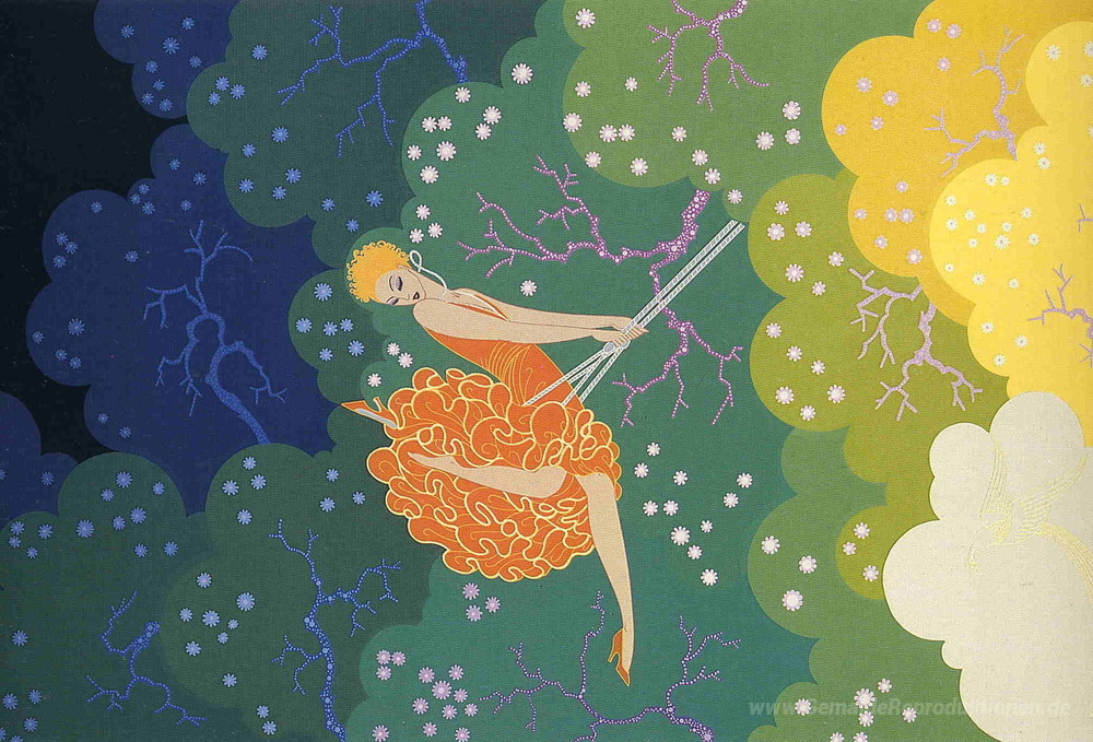 Wir bieten Ihnen eine handgefertigte Reproduktion auf Leinwand des berühmten Kunstwerks 'Die Schaukel' von Erte, aus dem Reproduktionsmuseum.
