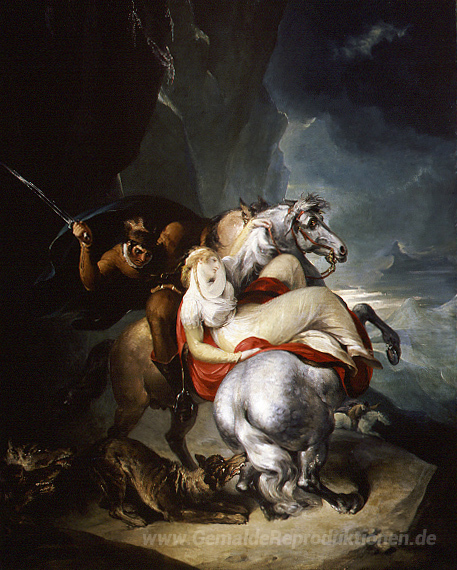 Wir bieten Ihnen eine handgefertigte Reproduktion auf Leinwand des berühmten Kunstwerks 'Die Wölfe absteige aus den Alpen' von William Hamilton, aus dem Reproduktionsmuseum.