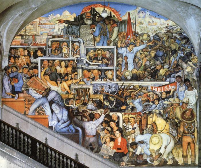 Wir bieten Ihnen eine handgefertigte Reproduktion auf Leinwand des berühmten Kunstwerks 'Die Welt von heute und morgen' von Diego Rivera, aus dem Reproduktionsmuseum.