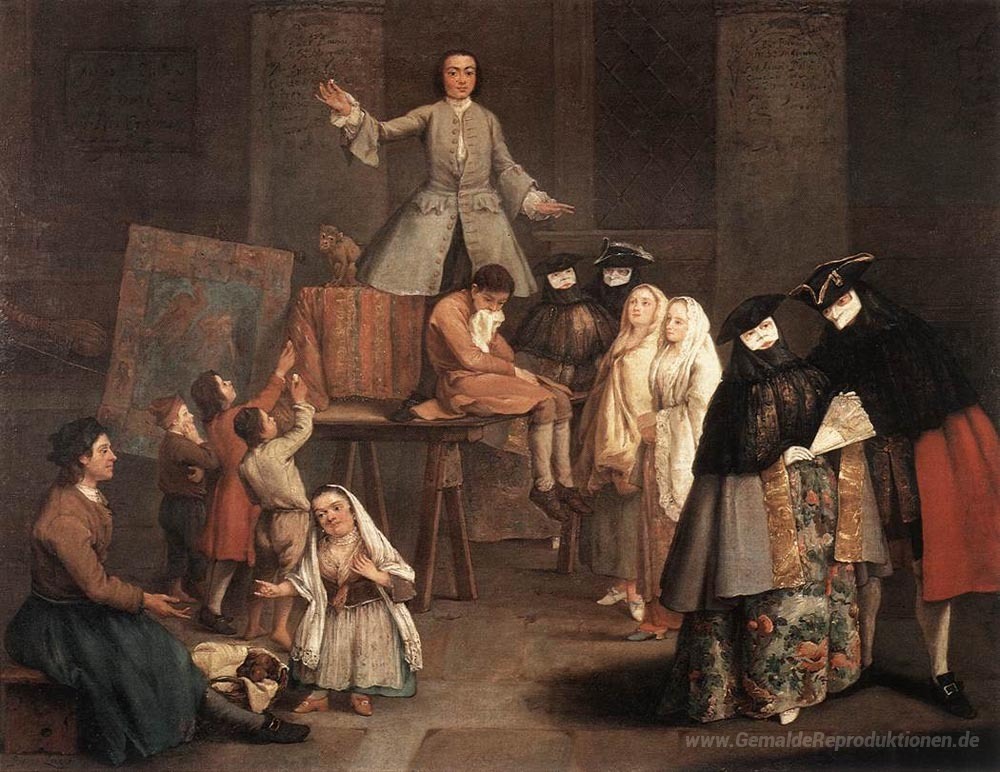 Wir bieten Ihnen eine handgefertigte Reproduktion auf Leinwand des berühmten Kunstwerks 'Die Zahn Extractor' von Pietro Longhi, aus dem Reproduktionsmuseum.