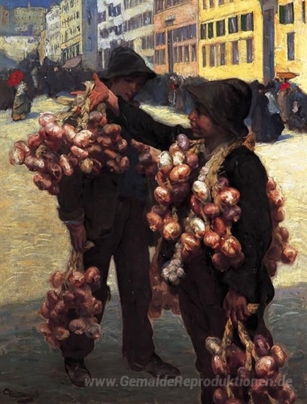 Wir bieten Ihnen eine handgefertigte Reproduktion auf Leinwand des berühmten Kunstwerks 'Die Zwiebel Sellers' von Charles Hermans, aus dem Reproduktionsmuseum.