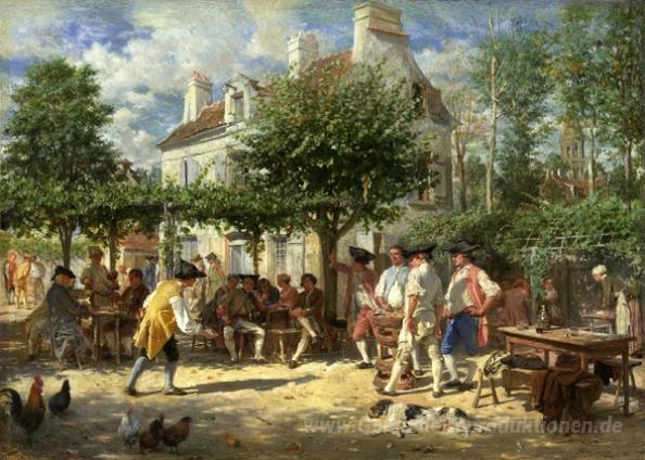 Wir bieten Ihnen eine handgefertigte Reproduktion auf Leinwand des berühmten Kunstwerks 'Dimanche à Poissy' von Ernest Meissonier, aus dem Reproduktionsmuseum.